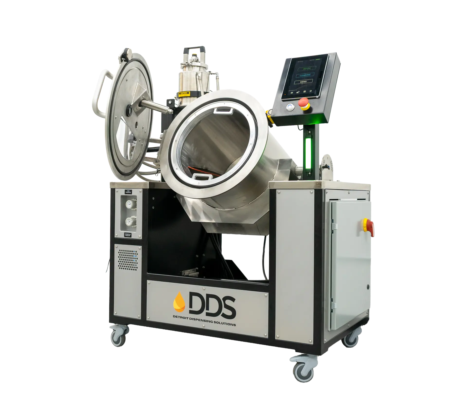 The FX-8’s innovative true-batch bag system makes flower infusion cleaner, faster, and more reliable. Its specialty round-bottom drum liner is vacuum-formed to fit the rotating drum, securely containing product to prevent cross-contamination and keep every batch mess-free. A magnetic ring locks the bag in place for quick, easy setup.