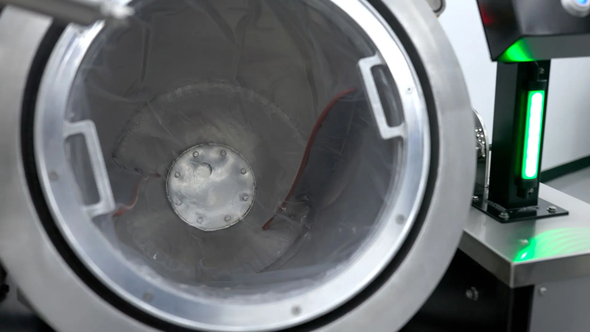 The FX-8’s engineered inner drum features directional helical fins that lift, tumble, and roll flower in a controlled, three-dimensional motion. This spiral geometry continuously moves material from the bottom of the drum to the top—eliminating dead zones, preventing clumping, and ensuring all the flower passes through the atomized spray path.